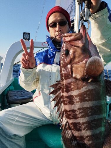 午前船 常連様 チョイヒラメ&マハタ狙い 釣果マハタ2本3.5と4kgヒラメ2枚 カンコ アヤメカサゴ 6時出船 港前浅場~ヒラメ狙い横流しで5打数3安打 1枚リリース 40分位の釣り 次に西沖のマハタ家訪問です! 何時も二枚潮に悩まされるポイントですが 今…