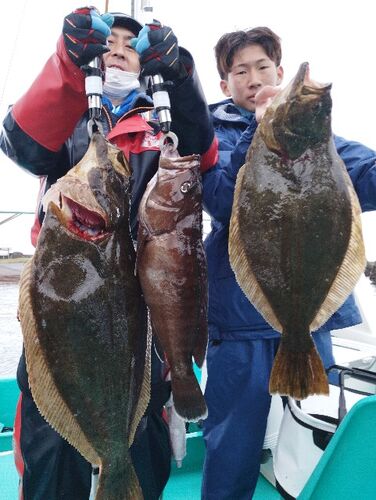 午前船 ヒラメ&マハタ狙い 釣果 ヒラメ5枚1.2〜4.5Kg マハタ2本1.0と2.2Kg 赤カサゴ アオハタ 5時30分出船 昨日と同じパターンです。 マズメ〜中盤までは根魚ノミの釣果 後半ヒラメのアタリが出だし5枚、撤収間際の 4.5Kは感動しました✨